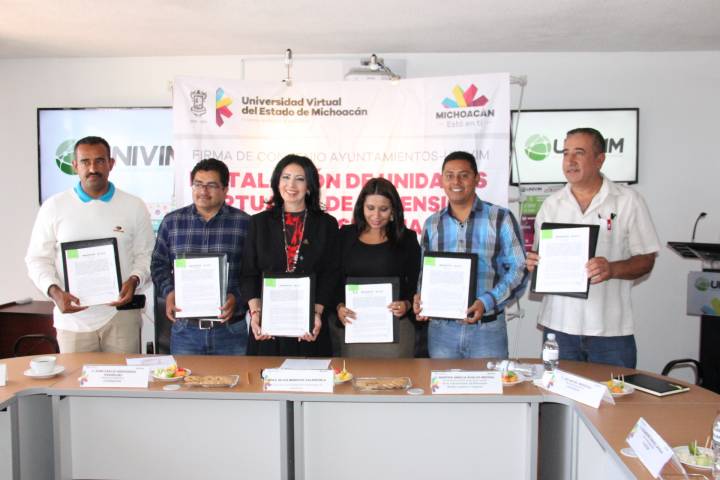 NOTICIAS 12/05/2016La Univim llega a 36 municipios michoacanos En seguimiento a una de las principales líneas de trabajo del Gobernador del Estado, Silvano Aureoles Conejo, la rectora de la Universidad Virtual de Michoacán (Univim), Silvia Mendoza Valenzuela, y cuatro presidentes municipales de la entidad signaron el convenio de colaboración interinstitucional para la instalación de Unidades Virtuales de Extensión Universitaria (UVEUs).