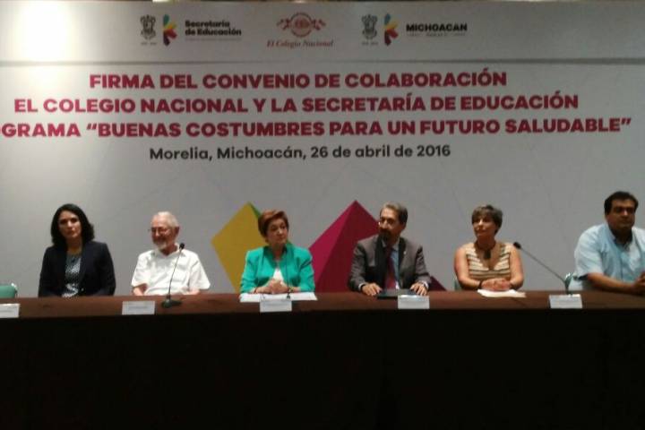 NOTICIAS 26/04/2016SEE signa convenio de colaboración y apoyo con el Colegio Nacional de Salud A fin de educar a los infantes michoacanos a tener hábitos de vida saludables que les permitan contar con una mejor calidad de vida, la Secretaría de Educación en el Estado (SEE) y el Colegio Nacional de Salud firmaron convenio de colaboración para la implementación del programa "Buenas Costumbres para un Futuro Saludable".