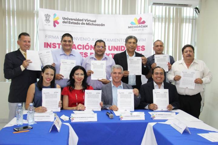 NOTICIAS 11/04/2016La Univim acerca la educación superior a la región Lerma - Chapala En cumplimiento al compromiso del Gobernador Silvano Aureoles Conejo de acercar la educación superior a los sectores más vulnerables de la entidad, siete alcaldes de municipios de la región Lerma-Chapala firmaron el convenio de colaboración con la Universidad Virtual del Estado de Michoacán (Univim) para la instalación de las Unidades Virtuales de Extensión Universitaria (UVEUs).