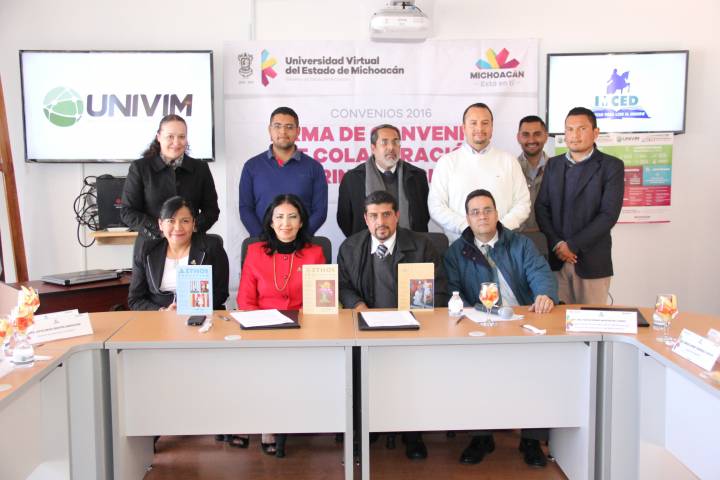 Con el objetivo de establecer las bases para coordinar acciones de cooperación en materia de capacitación de personal mediante el intercambio y prestación de servicios en la modalidad de cursos educativos en línea, la Universidad Virtual del Estado de Michoacán (Univim) y el Instituto Michoacano de Ciencias de la Educación (Imced) signaron un convenio de colaboración interinstitucional.