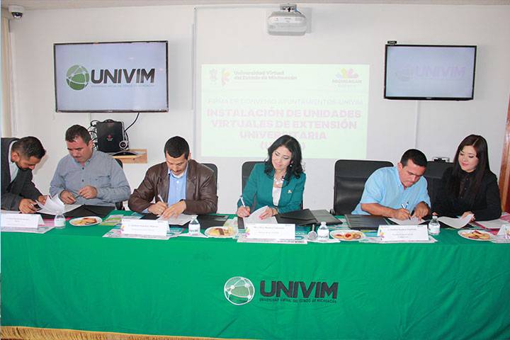 NOTICIAS 12/02/2016Ofrece Univim educación superior de calidad para todos los municipios Con el propósito de incrementar la cobertura en educación superior, como lo ha comprometido el Gobernador del Estado, Silvano Aureoles Conejo, la Universidad Virtual del Estado de Michoacán (Univim) y los Ayuntamientos de Paracho y Ziracuaretiro, signaron el convenio de colaboración para la instalación de las Unidades Virtuales de Extensión Universitaria (UVEUs).