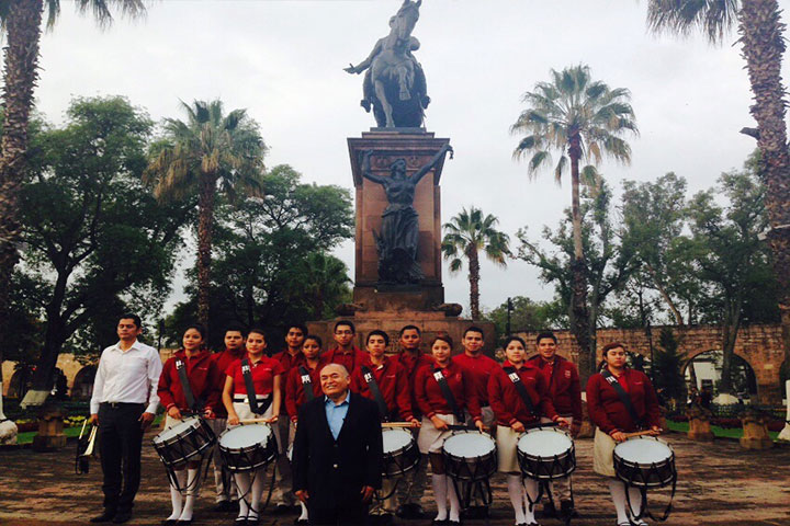 En representación del Gobernador del Estado, Salvador Jara Guerrero, el Director General del Colegio de Bachilleres del Estado de Michoacán (COBAEM), Lic. Rolando López Villaseñor y el Presidente Municipal de Morelia, Ing. Alfonso Martínez Alcázar, realizaron el izamiento a la Bandera en la Plaza Jardín Morelos.