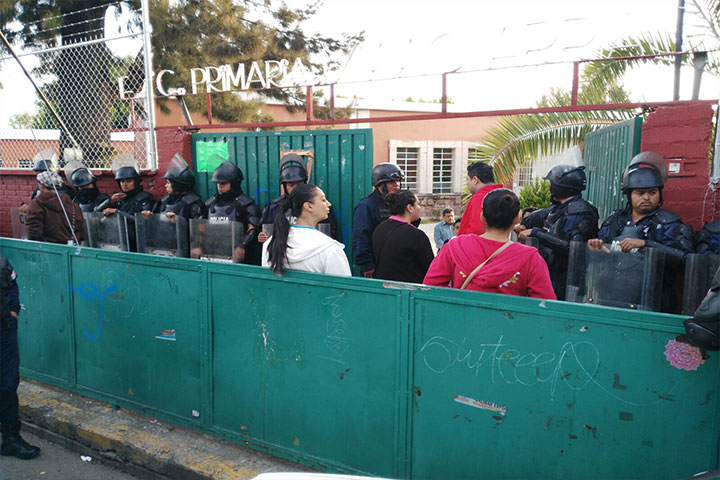NOTICIAS 26/08/2015Policías resguardan la Escuela Primaria Isaac Arriaga