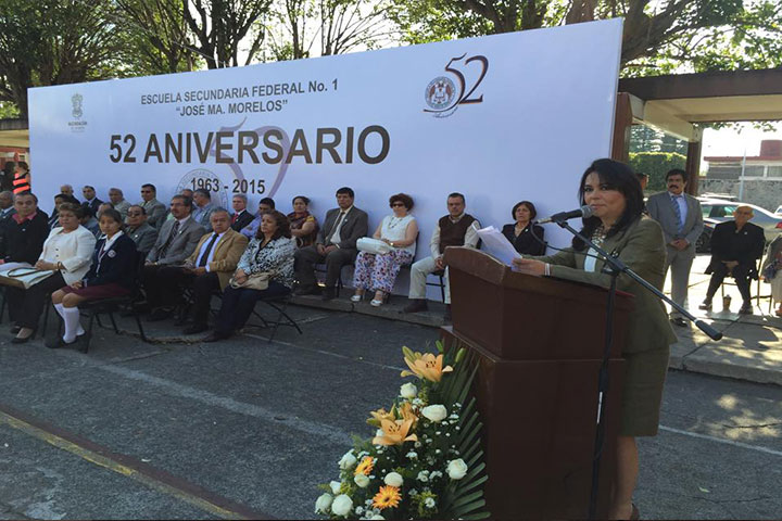 En el marco del aniversario 52 de la escuela federal numero 1 "José María Morelos", Ana Brasilia Espino Sandoval, titular de la secretaria de los jóvenes (SEJOV), oradora oficial del aniversario, manifestó que esta escuela ha dado 49 generaciones que se convirtieron en grandes mujeres y hombres.
