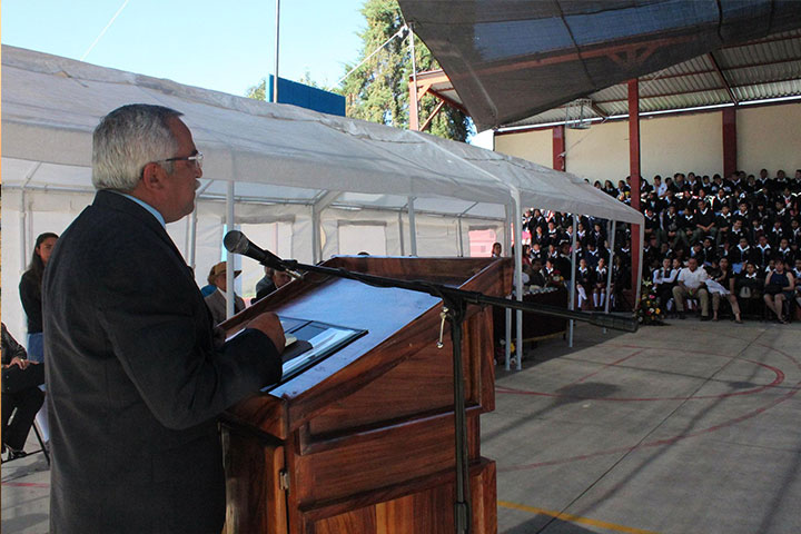 "La escuela es el ente abstracto generado por el hombre para perpetuar la especie", exaltó Armando Sepúlveda López, secretario de Educación en el estado, durante la celebración del 50 aniversario de la Escuela Secundaria Federal número 11 "Simón Bolívar".