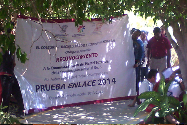 La comunidad estudiantil del Colegio de Bachilleres de Tuzantla recibió el reconocimiento oficial que el Subsistema de Educación Media Superior entrega por haber obtenido los mejores resultados en la prueba de Evaluación Nacional del Logro Académico en Centros Escolares (ENLACE) 2014, siendo uno de los seis planteles distinguidos por sus resultados, de entre los más de 120 centros de estudios que componen dicho subsistema, informó Serafí... Ver más...