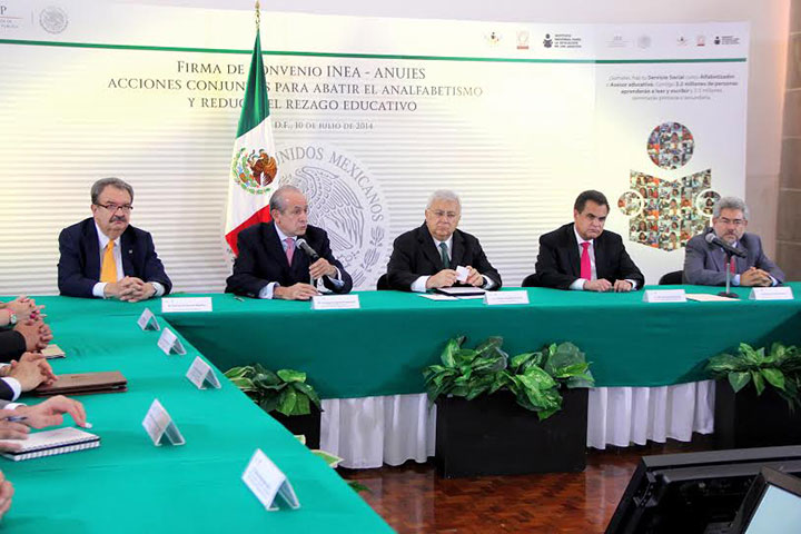 NOTICIAS 13/07/2014ANUIES e INEA cierran filas contra el analfabetismoCon el objetivo de reducir en un 50 por ciento el analfabetismo y disminuir el rezago educativo que enfrenta el país, la Asociación Nacional de Universidades e Instituciones de Educación Superior (ANUIES) y el Instituto Nacional para la Educación de los Adultos (INEA), firmaron el acuerdo de colaboración "Acciones conjuntas para abatir el analfabetismo y reducir el rezago educativo".