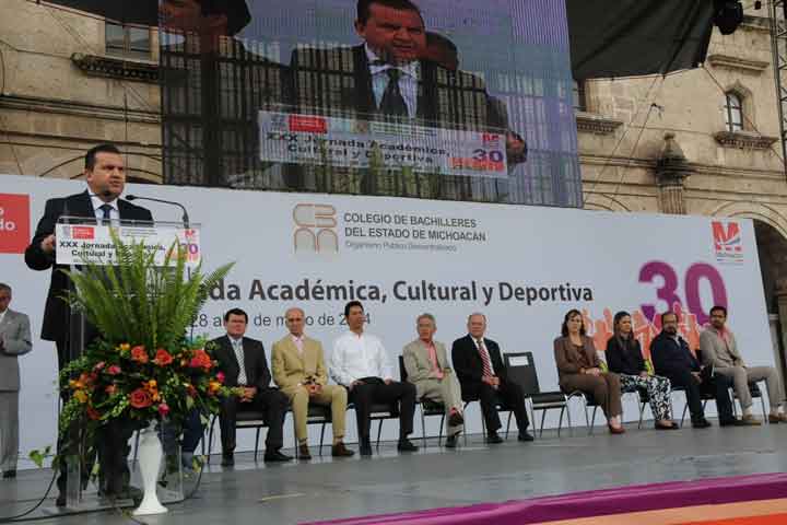 Al llevarse a acabo la inauguración de la XXX Jornada Académica, Cultural y Deportiva del Colegio de Bachilleres de Michoacán (Cobaem), el encargado del despacho de la Secretaría de Gobierno, Marco Vinicio Aguilera Garibay, se dirigió a los cientos de alumnos de este subsistema educativo para reconocer el esfuerzo, dedicación y empeño demostrado en sus actividades diarias.