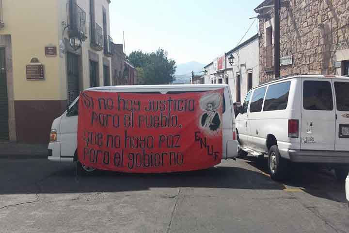 A la par de la toma en la avenida Siervo de la Nación, el grupo de jóvenes pertenecientes a la Organización de Normales Oficiales del Estado de Michoacán (ONOEM) mantienen la toma en la calle Andrés Quintana Roo.