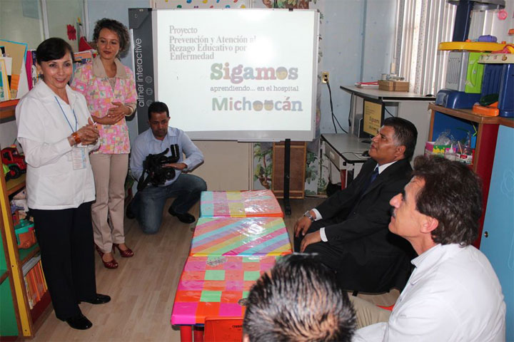 Más de dos mil niños y adolescentes que padecen enfermedades crónicas y de otro tipo, que los imposibilitan a acudir a las escuelas regulares, fueron atendidos por la Secretaría de Educación en Michoacán a través del Programa Sigamos Aprendiendo en el Hospital, que fue supervisado por el titular de Educación, J. Jesús Sierra Arias en el Hospital Infantil "Eva Sámano de López Mateos".