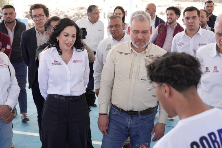 NOTICIAS 03/03/2026Transformamos la educación de 6 mil estudiantes en Tacámbaro y Turicato: Gabriela MolinaLa secretaria de Educación, Gabriela Molina, coordinó la entrega de calzado escolar para fortalecer la permanencia de más de 6 mil jóvenes en 58 escuelas de Tacámbaro y Turicato. A través del programa Jalo a Estudiar, Jalo por la Paz, la dependencia estatal fomenta condiciones de equidad que permiten a las y los alumnos de nivel secundaria continuar con su trayecto formativo, como es instrucción del gobernador Alfredo Ramírez Bedolla.