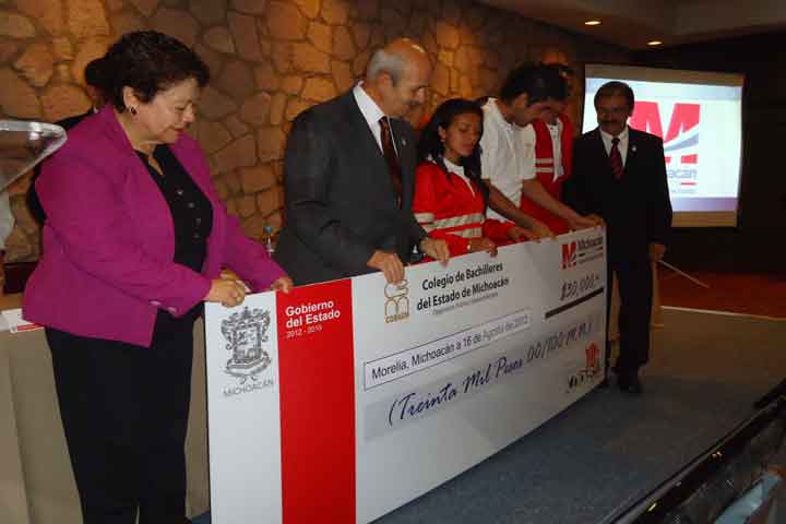 Fueron 114 los alumnos del Colegio de Bachilleres de diversas partes del estado los que recibieron incentivos económicos como parte del programa de Apoyo e Incentivos para Talentos del Colegio de Bachilleres del Estado de Michoacán.