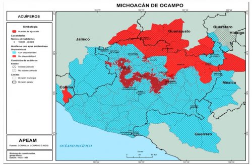 Otro dato importante, es que los acuíferos agotados del bajío se encuentran fuera de la zona aguacatera, lo anterior de acuerdo a la información de CONAGUA e INEGI; es decir la zona productora de aguacate, se encuentra en fase de equilibrio, con datos de los años 2018 y 2020.