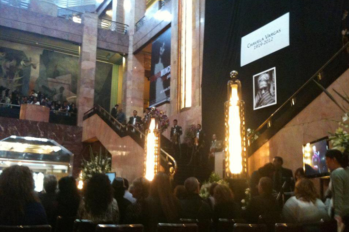 NOTICIAS 07/08/2012Entre aplausos y gritos, "Chavela" arriba a Bellas Artes para darle el último adiósEn medio de aplausos fue recibido el cuerpo de la cantante mexicana de origen costarricense Chavela Vargas en el Palacio de Bellas Artes.