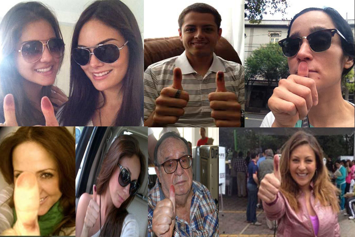 NOTICIAS 01/07/2012Famosos comparten en redes sociales imagen de su votoLas redes sociales confirman su importancia y fuerza actualmente por la difusión masiva y rápida que han logrado en muy pocos años. Esto se comprobó este día 01 de julio, fecha en la que México se encuentra inmerso en una elección importante al renovar al Presidente de la República, Senadores, Diputados y Gobernadores.