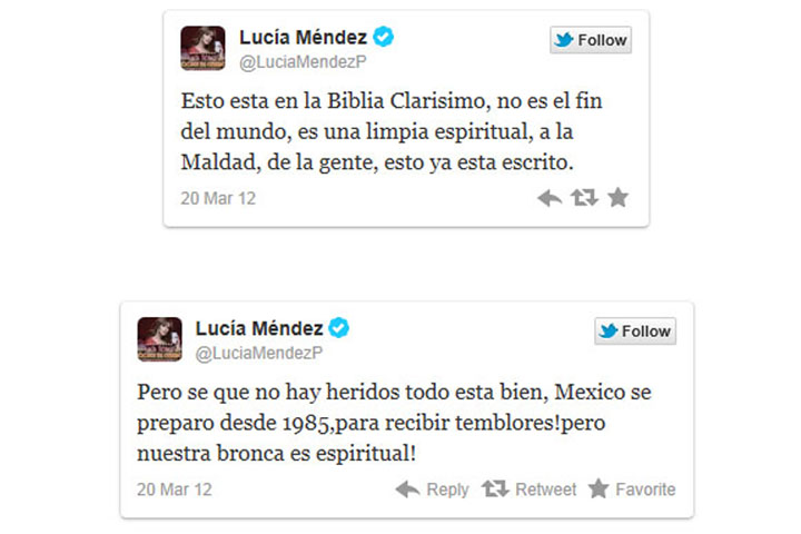 Atacan a Lucía Méndez por Twitter tras comentarios del sismo en México