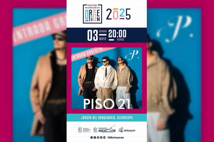 Piso 21 ya está en Morelia y se encuentra listo para inaugurar esta noche el área de conciertos del Festival Michoacán de Origen (FMO). A través de un video en sus redes sociales, la Secretaría de Turismo de Michoacán (Sectur), encabezada por Roberto Monroy García, compartió un clip donde David Escobar, Juan David Huertas y Pablo Mejía recuerdan que este sábado ofrecerán el concierto con acceso libre, para compartir sus más grande...