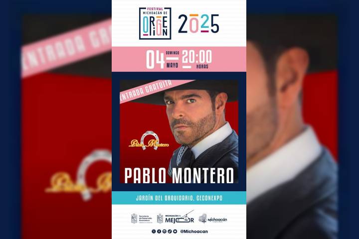 La música ranchera se hará presente este domingo 4 de mayo con Pablo Montero, quien llega al Festival Michoacán de Origen (FMO) para el segundo día de actividades en el área de espectáculos. El concierto del intérprete de "Mi piquito de oro" iniciará a las 20:00 horas en el jardín del Orquidario del Centro de Convenciones y Exposiciones de Morelia (Ceconexpo), recordó la Secretaría de Turismo de Michoacán (Sectur), encabezada por R...