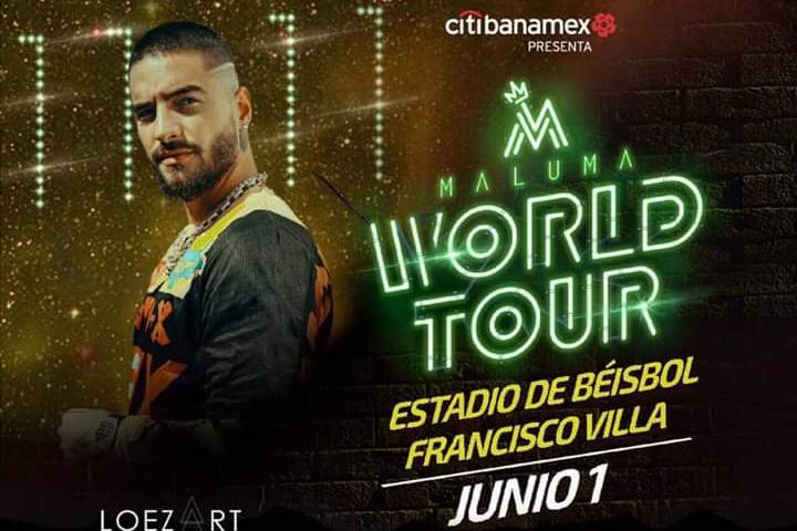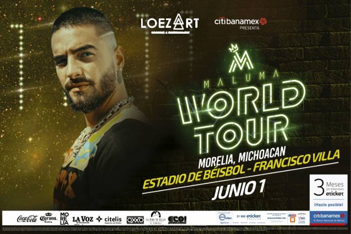 El máximo ídolo de la música urbana Maluma, ofrecerá un concierto en el Estadio de Béisbol "Francisco Villa" de la capital michoacana el sábado 1 de junio a las 21:00 horas, como parte de su gira "World Tour" con la que visitará México.