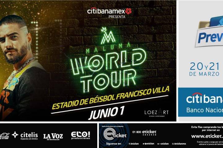 NOTICIAS 20/03/2019Iniciará preventa Citibanamex para concierto de Maluma en Morelia Los boletos para disfrutar del concierto de Maluma en Morelia, se podrán adquirir en fase de preventa Citibanamex con opción a tres meses sin intereses este miércoles 20 y jueves 21 de marzo.