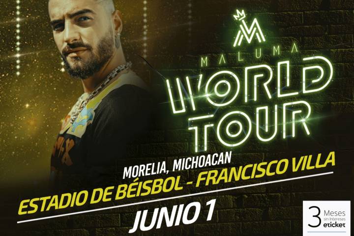 NOTICIAS 24/04/2019Morelia recibirá el "World Tour" de Maluma en junio El ídolo de la música urbana, Maluma, llegará al Estadio de Béisbol "Francisco Villa" de Morelia el próximo sábado 1 de junio a las 21:00 horas, para cantar con todos sus fans su éxitos como parte del "World Tour", que tendrá diversas paradas por México.