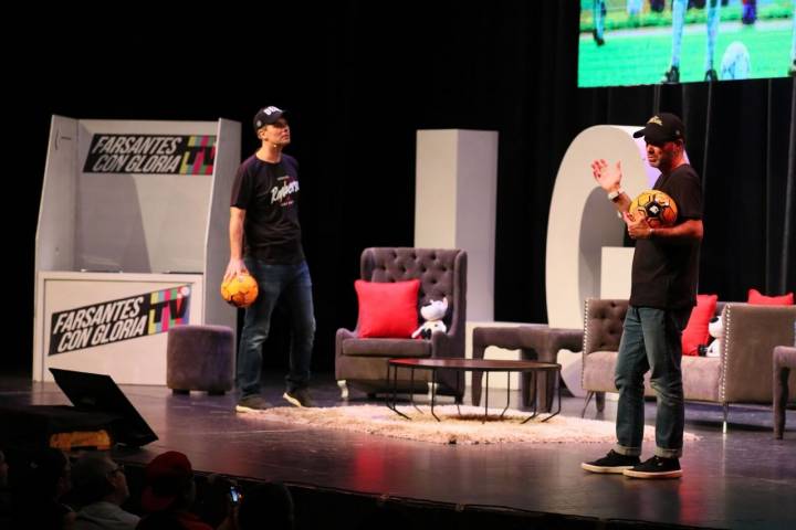Ambos reconocidos periodistas deportivos se presentaron ante el público que tenía la inquietud por conocer el show que vienen presentando por la República Mexicana y tocaba turno a la ciudad de la cantera rosa.