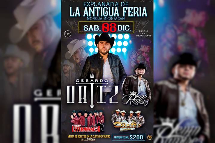 NOTICIAS 29/11/2018Se acerca la presentación de Gerardo Ortiz, en Morelia El cantante Gerardo Ortiz, se presentará el próximo sábado 8 de diciembre en la Explanada de la Antigua Feria en un sensacional baile a las 21:00 horas, evento a cargo de Best Producciones.