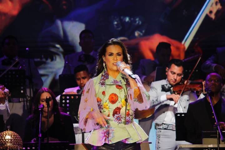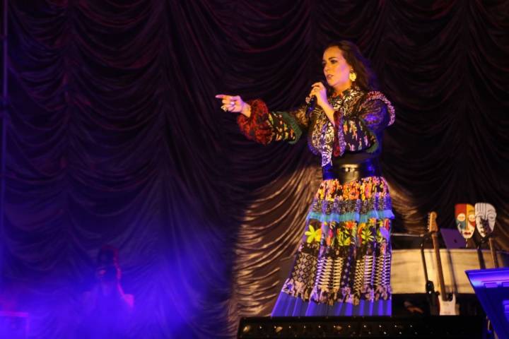 Poco después de las siete y treinta de la noche la guapa cantante apareció en el escenario con su famoso tema "Mírame ", que de inmediato fue coreado por los presentes y así comenzar una velada inolvidable.