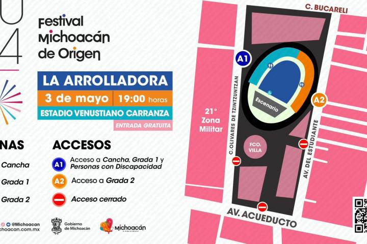 NOTICIAS 03/05/2024Por dónde ingresar al Venustiano para el concierto de La Arrolladora; aquí te decimosLa Arrolladora llega hoy viernes al Estadio Venustiano Carranza de Morelia, dentro de la edición 2024 del Festival Michoacán de Origen (FMO). El acceso será libre para todo el público, es decir, que no se requerirá boleto.