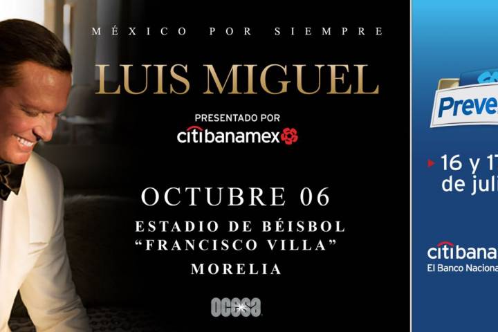 NOTICIAS 12/07/2018¡El Sol brilla con todo su esplendor!El éxito de Luis Miguel es indiscutible e imparable en estos momentos y tras agotar las localidades de todos sus conciertos en México y España OCESA se complace en anunciar que el intérprete visitará el Estadio de Béisbol Francisco Villa de Morelia, Michoacán el próximo 6 de Octubre. La preventa exclusiva Citibanamex será el 16 y 17 de julio, y un día después los boletos estarán disponibles al público en general. Con esta gran fecha,... Ver más...