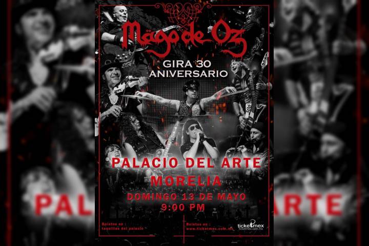 La banda española de folk metal Mägo de Oz, se presentará en Morelia el próximo domingo 13 de mayo, para ofrecer un concierto en el Palacio del Arte a partir de las 21:00 horas, evento presentando por Ticketmex. Los boletos ya se pueden adquirir a través de www.ticketmex.com.mx y Cueva de Chucho (Sucursal Centro). Los costos para disfrutar de Mägo de Oz son los siguientes: - Ruedo: 700 pesos - Barrera: 500 pesos - General: 350 p...