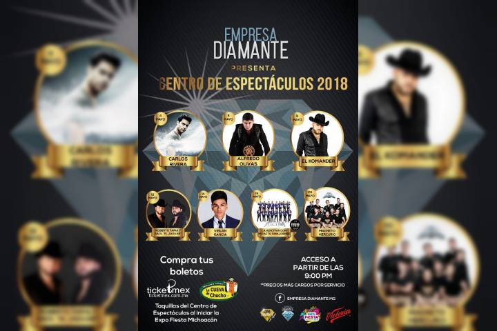 Presenta Empresa Diamante MG cartel para el Centro de Espectáculos de la Expo Fiesta Michoacán 2018