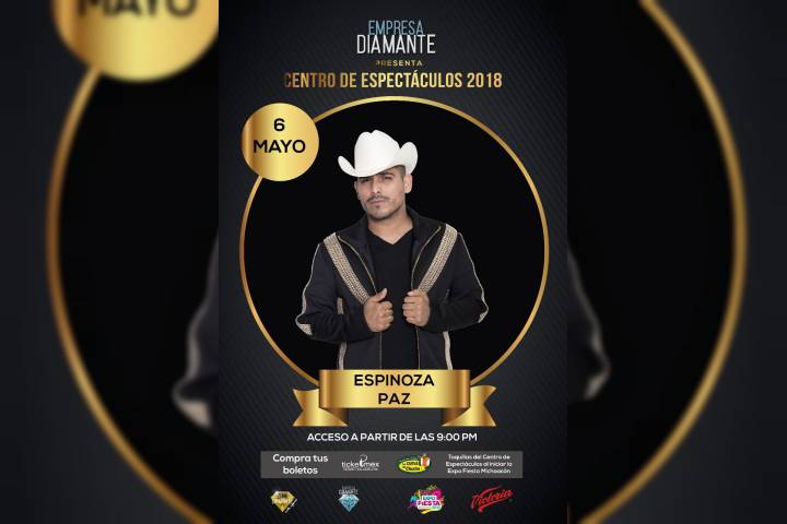El cantante Espinoza Paz, se sumará a la variedad artística del Centro de Espectáculos de la Expo Fiesta Michoacán 2018 que estará a cargo de la Empresa Diamante MG. El intérprete de "Lo intentamos", se presentará el domingo 06 de mayo para interpretar los innumerables éxitos que lo han colocado como uno de los favoritos del género pop y regional mexicano. Los costos para disfrutar de Espinoza Paz son los siguientes: - Zona Dia...