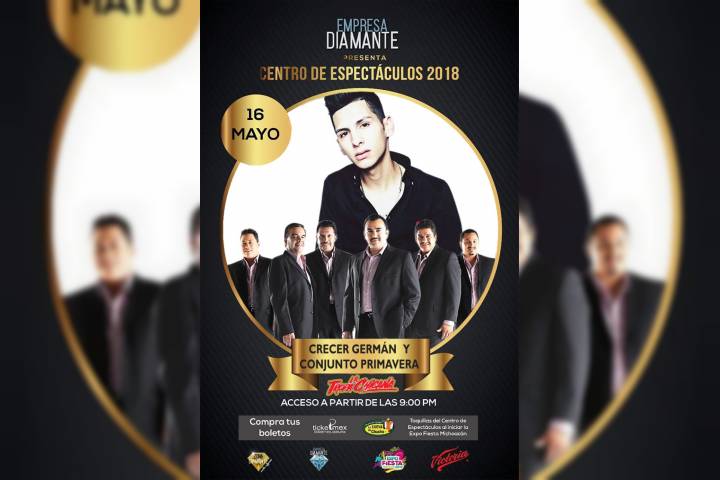 El cantante del momento, Crecer Germán, se suma a las presentaciones en el Centro de Espectáculos de la Expo Fiesta Michoacán 2018, a cargo de la Empresa Diamante de MG, y que ahora suman 9 conciertos. El exvocalista de Alta Consigna llegará al recinto ferial el próximo miércoles 16 de mayo en compañía de Conjunto Primavera. Los boletos para disfrutar del show del intérprete se pueden adquirir en la Cueva de Chucho (Centro), en ww...