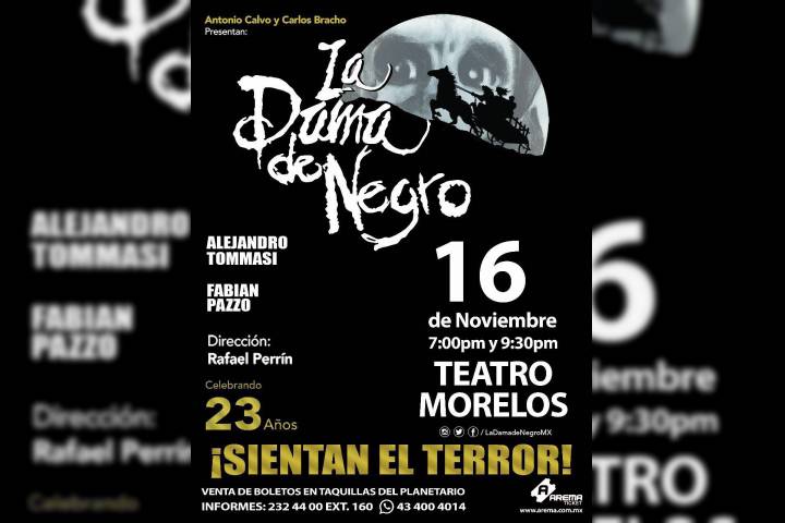 NOTICIAS 08/11/2017La escalofriante historia de "La Dama de Negro" regresará a MoreliaLa exitosa puesta en escena "La Dama de Negro", regresará el próximo jueves 16 de noviembre al Teatro Morelos de la capital michoacana con dos funciones: 19:00 y 21:30 horas, respectivamente.