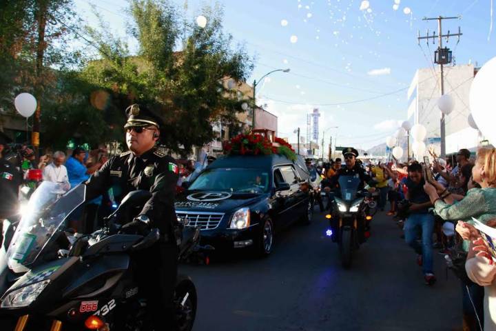 La urna con las cenizas del Divo de Juárez llegó al que fue su domicilio unos 25 minutos después de lo previsto, pero fueron recibidas con agrado por la gente que se reunió en este lugar.