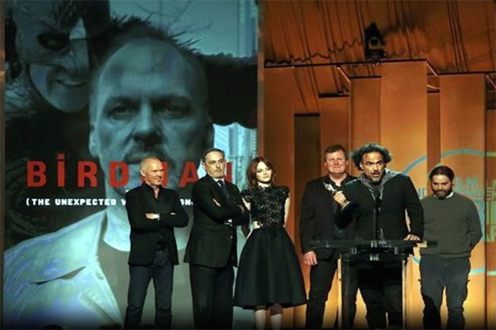 "Birdman", cinta en la que un veterano actor venido a menos trata de resucitar su carrera con un espectáculo en Broadway, se impuso como mejor película y su p... Ver más...