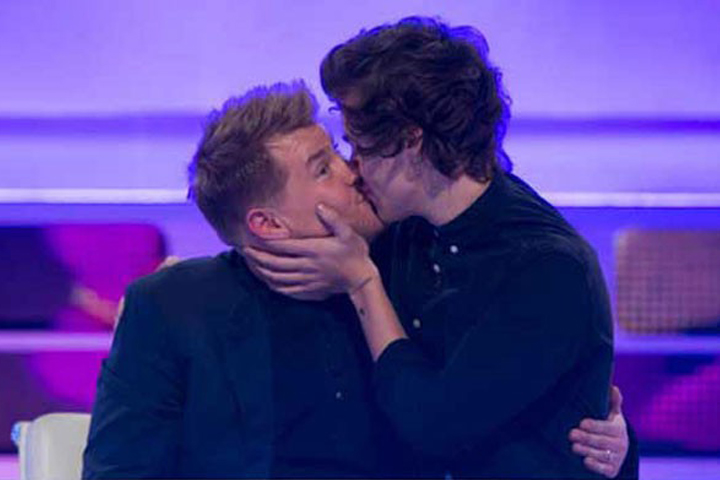 A pesar de los rumores sobre su espalda, Harry le dio un beso en la boca a James Corden, un cómico inglés,... Ver más...