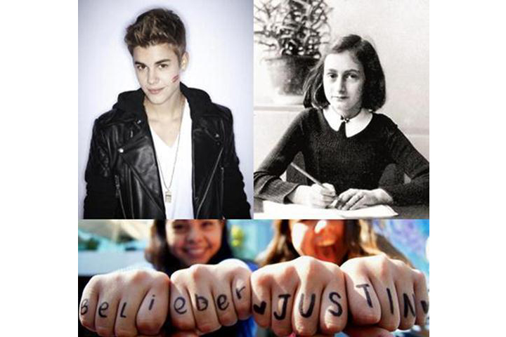 NOTICIAS 14/04/2013Asegura Justin, Anna Frank hubiera sido una buena belieberJustin Bieber visitó el museo de Anna Frank en Holanda y además de sentirse inspirado por la vida de la joven judía, quien falleció a los 15 años en un campo de concentración en 1945, el canadiense expresó que habría sido una de sus seguidoras.