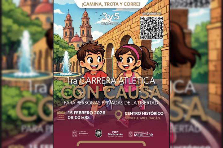 La Coordinación del Sistema Penitenciario llevará a cabo la primera Carrera Atlética con Causa en favor de las personas privadas de la libertad, el próximo 15 de febrero, a las 8:00 horas. La actividad busca reunir a cientos de familias en el primer cuadro de Morelia para promover la construcción de una sociedad más incluyente y solidaria. Podrán participar personas de todas las edades, ya sea caminando, trotando o corriendo. El arra...