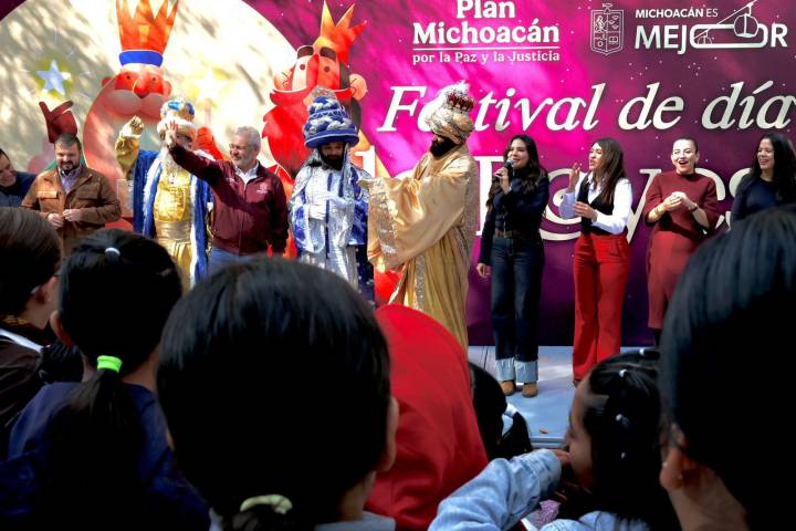 NOTICIAS 06/01/2026Con entrega de juguetes, celebra Bedolla el Día de Reyes en la Villa NavideñaEn un ambiente de alegría y tradición, el mandatario Alfredo Ramírez Bedolla y los tres Reyes Magos, Melchor, Gaspar y Baltasar, entregaron juguetes a niñas y niños michoacanos, con quienes compartió la Rosca de Reyes, en la Villa Navideña del Gobierno estatal.