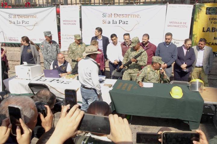 NOTICIAS 29/11/2025Avanza en Michoacán estrategia de desarme con resultados en Morelia y ZamoraLa secretaria de Gobernación, Rosa Icela Rodríguez, informó que en Michoacán avanza con resultados positivos la estrategia "Sí al Desarme, Sí a la Paz", una acción institucional destinada a invitar a la población a entregar de manera anónima y voluntaria sus armas de fuego a cambio de dinero en efectivo.