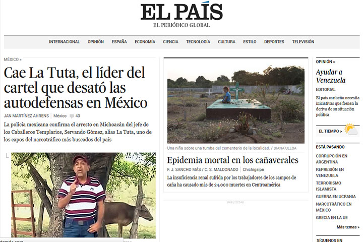 NOTICIAS 27/02/2015Detención de La Tuta, nota internacionalDiversos medios de comunicación internacionales y agencias de noticias como The Washington Post, BBC de Londres, The New York Times, El País, Le Monde, The Guardian, CNN, AP, El Clarín de Argentina, entre otros, destacaron en sus portales de internet la captura de Servando Gómez alias "La Tuta" efectuada hoy en Morelia, Michoacán por parte de elementos de la Policía Federal.