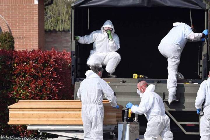 NOTICIAS 20/03/2020Ejército italiano traslada decenas de féretros para incinerarUna larga columna de camiones militares atravesó el miércoles por la noche el centro de Bérgamo, en el norte de Italia, transportando decenas de féretros de víctimas del coronavirus para su incineración en otros lugares, debido a que el cementerio de la ciudad ya no tiene capacidad.