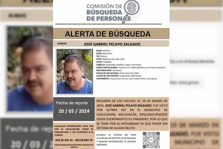 NOTICIAS 22/03/2024Desaparece en Coalcomán el activista social y protector de la flora y fauna de la sierra-costa, José Gabriel PelayoA 96 horas de su desaparición, los familiares del maestro de primaria y activista social y a favor del medio ambiente, José Gabriel Pelayo Zalgado, exigen a las autoridades estatales, federales y municipales su aparición con vida para que regrese a casa con sus seres queridos.