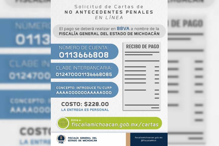 NOTICIAS 05/01/2024En 2023, la Fiscalía General expidió más de 39 mil Cartas de No Antecedentes Penales en todo el estadoEn 2023, la Fiscalía General del Estado de Michoacán (FGE) emitió 39 mil 623 Cartas de No Antecedentes Penales, a través su sitio oficial en línea www.fiscaliamichoacan.gob.mx/cartas, servicio implementado hace un par de años, con la finalidad de agilizar dicho trámite a las y los michoacanos que la requieran.