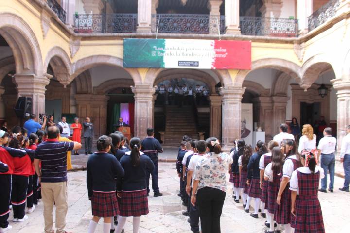 La mañana de este miércoles, el Poder Judicial del estado de Michoacán, a través del Palacio de Justicia que se encuentra en el centro histórico, inauguró la exposición "Símbolos Patrios Nacionales: el Escudo, la Bandera y el Himno". La inauguración dio inicio con honores a la Bandera, a cargo de la banda de Guerra y Escolta del Centro Escolar Michoacano, donde estuvieron presentes las autoridades del Poder Judicial de Michoacán los...