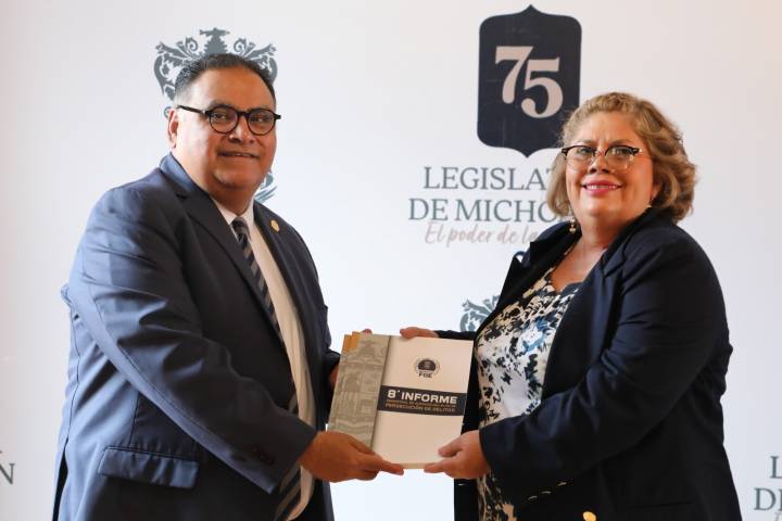 NOTICIAS 28/08/2023Presenta Fiscal General, 8º Informe Semestral de Avances del Plan de Persecución de Delitos En cumplimiento a la Ley Orgánica de la Fiscalía General del Estado de Michoacán (FGE), el Fiscal General, Adrián López Solís, hizo entrega del 8º Informe Semestral de Avances del Plan de Persecución de Delitos (PPD), al Congreso del Estado de Michoacán, al Gobernador del Estado, Alfredo Ramírez Bedolla y al grupo de Inteligencia Operativa. El documento es un referente para continuar trabajando en la mejora del desempeño y garantizar... Ver más...