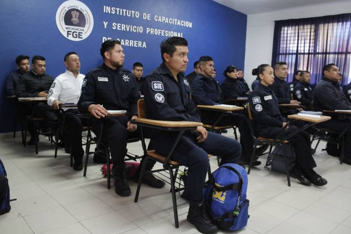 NOTICIAS 22/03/2023Inicia FGE especialización para policías de la Guardia CivilComo parte del compromiso de trabajo interinstitucional para brindar mejor atención a las tareas de seguridad y procuración de justicia, la Fiscalía General del Estado de Michoacán (FGE) dio inicio a las jornadas de trabajo enmarcadas en la "Especialización para Policías con Capacidades para Procesar".