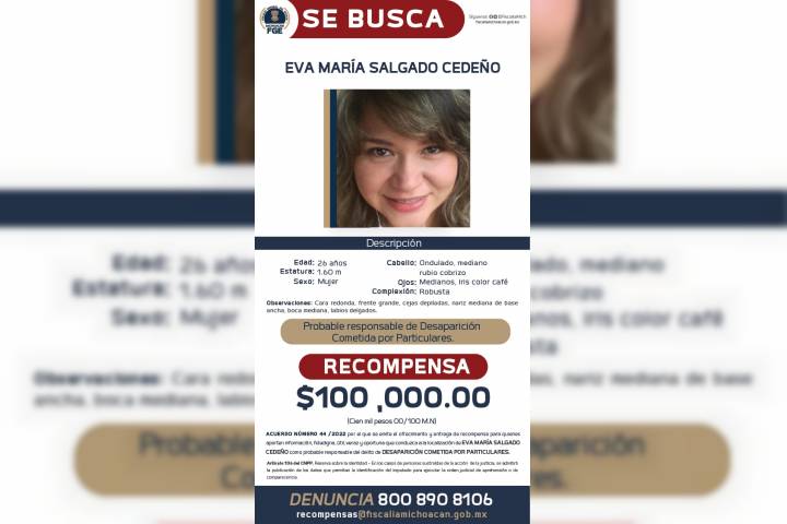 NOTICIAS 28/12/2022Se busca a Eva MarÃa, presunta responsable de la desaparición y muerte de Oliver ValleEva MarÃa Salgado Cedeño, serÃa la presunta responsable de la desaparición y asesinato de Oliver Valle Cuadra, según lo informado en rueda de prensa por el Fiscal General del Estado AdrÃan López SolÃs. Los restos de la vÃctima fueron encontrados calcinados en una caja de cartón, la cual estaba dentro de una fosa clandestina ubicada en un inmueble de la población de Joya de la Huerta, municipio de Morelia.